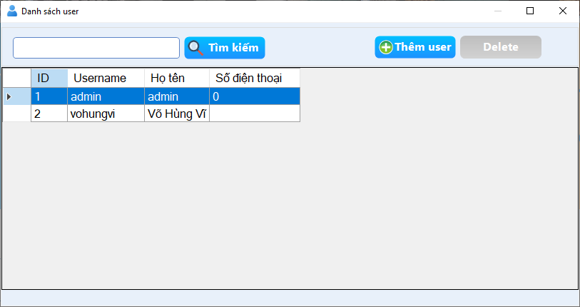 - Quản lý người dùng: có 2 loại tài khoản là admin và nhân viên.